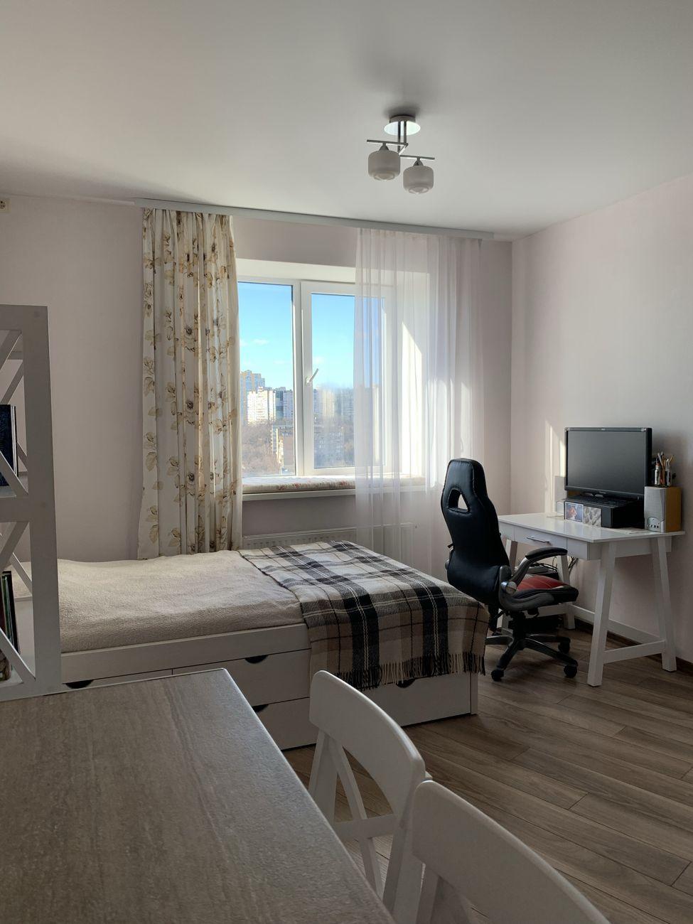 Видова квартира-студія в новобудові ЖК Мінський (вул. Попова, 3). Площа: 23 м кв. 17 поверх. Зонування: кухня+обідній стіл, двоспальне ліжко, робоче місце, вбудована шафа в коридорі і дуже просторий комод під ліжком. Вид на південно-західну сторону. Зручності: інтернет (працює при відключеннях світла), бойлер, кондиціонер, холодильник, пральна машина, мікрохвильовка, електроплита, газова туристична плитка, ванна. Лічильники на холодну та гарячу воду, електроенергію. Невелика плата за комуналку. Балкон в спільному коридорі. Будинок з консьєржем і відеоспостереженням двору. В будинку є укриття. Навколо будинку є місця для парковки. Поряд: Сільпо, АТБ, Нова Пошта, Укрпошта, поліклініка, приватні клініки, банки, McDonald's, Domino's, Il Molino, заправки, СТО. На першому поверсі будинку продуктовий магазин і стоматологія. Поряд з будинком є сквери та парки. Зручна транспортна розв'язка: метро Оболонь/Мінська/Почайна 15-20хв громадським транспортом, трамваї та автобуси на Контрактову площу, тролейбуси на Лукʼянівську і Майдан Незалежності, маршрутки в усі частини міста. 10 хвилин на авто до Контрактової площі. В пішій доступності ТЦ Караван, ТЦ Ретровіль.