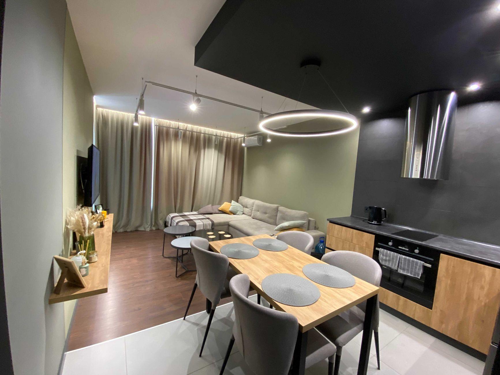 квартира студія в ЖК «Комфорт Таун» Площа: 47 м² Поверх: 8-й вул. Березнева, 16 к3 - Кухня-вітальня - Окрема спальні - Санвузол - Лоджия Квартира з гарним ремонтом, із зручним зонуванням: окрема зручна обідня зона, просторе місце для відпочинку у вітальні, робоче місце із вже встановленим столом. Можливо підключити зарядну станцію. Присутня вся необхідна техніка: Кондиціонер, телевізор, бойлер, пральна машина, посудомийна, духовка, холодильник, пилосос, праска і тд. Можна з тваринами Ціна 700$/міс