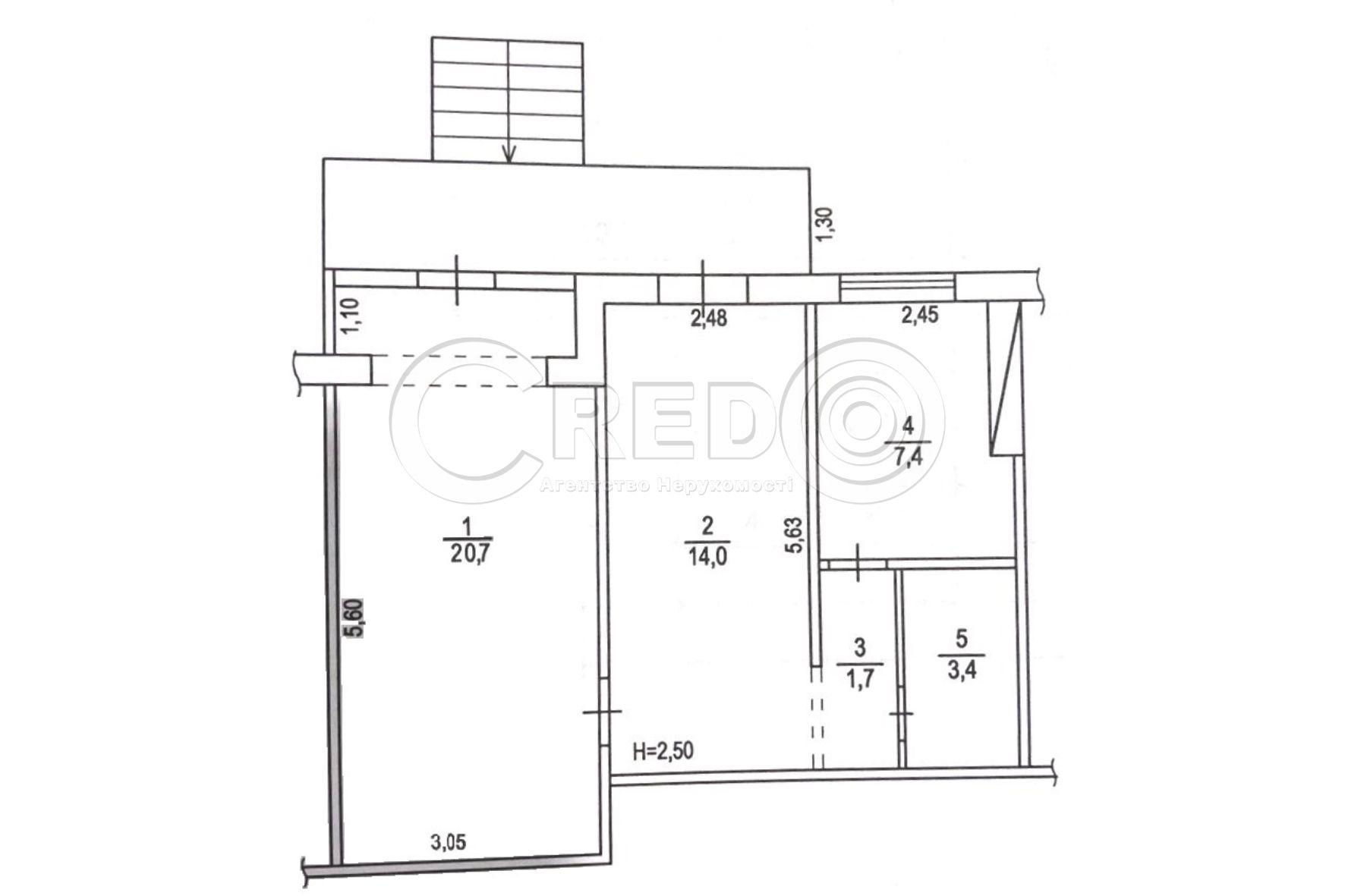 - Висота стелі 2.5м