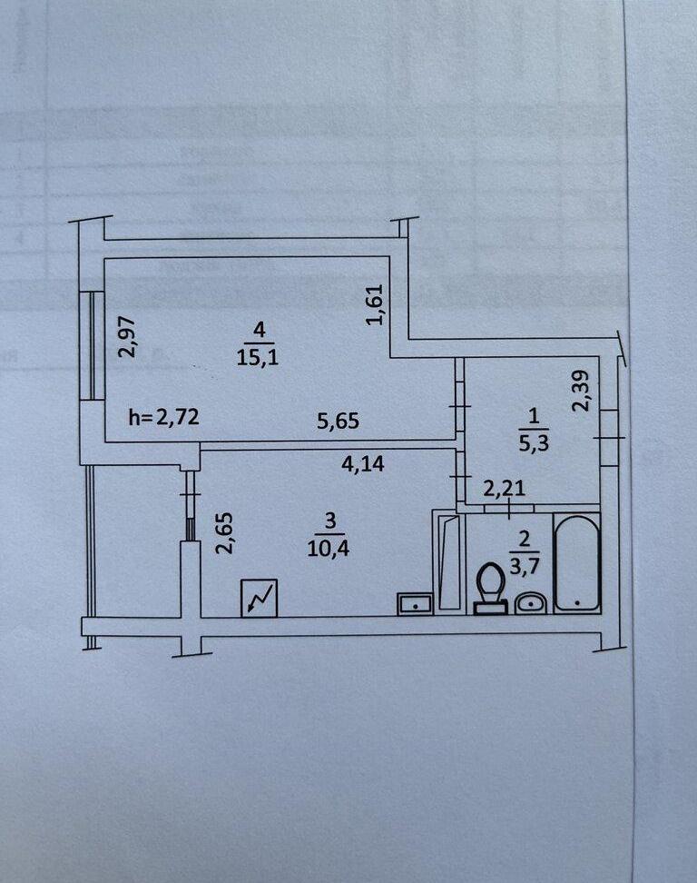 1 кімн. | 8/25 пов. | 38.20/15.10/10.40 м²