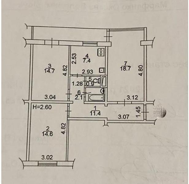 3 кімн. | 1/9 пов. | 74.30/46/7.40 м²