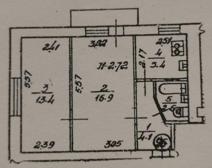 2 кімн. | 5/5 пов. | 43/31/5.40 м²