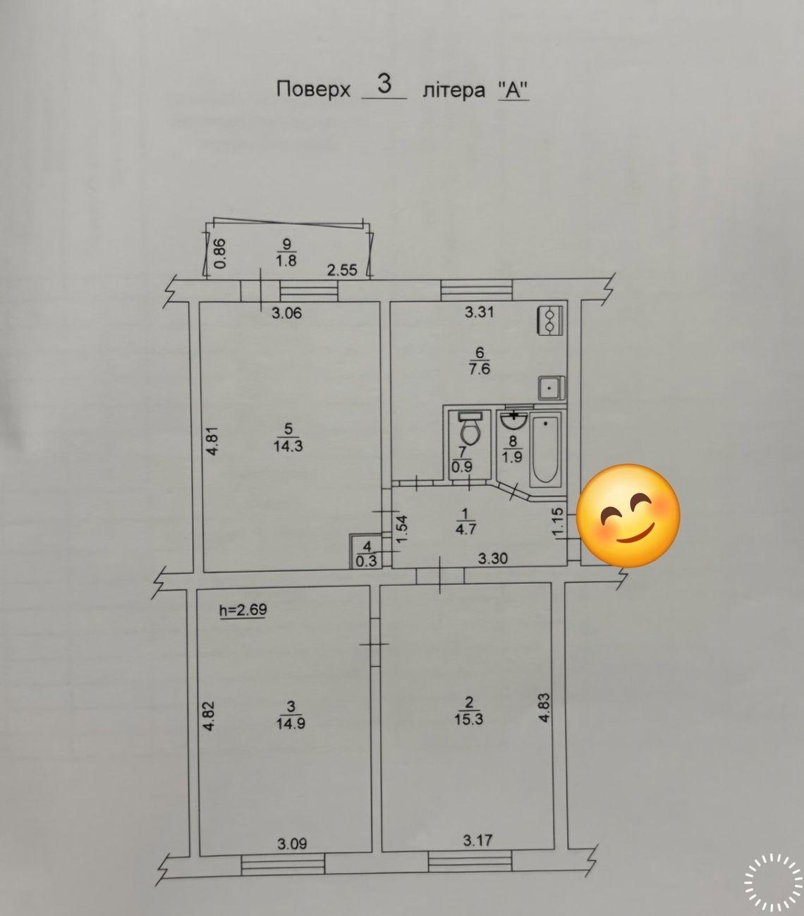 - Кількість кімнат: 3