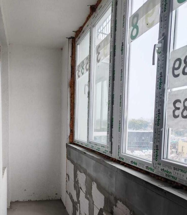 У квартирі розпочато перепланування під 2-кімнатну. Є великий засклений балкон із новими металопластиковими вікнами.