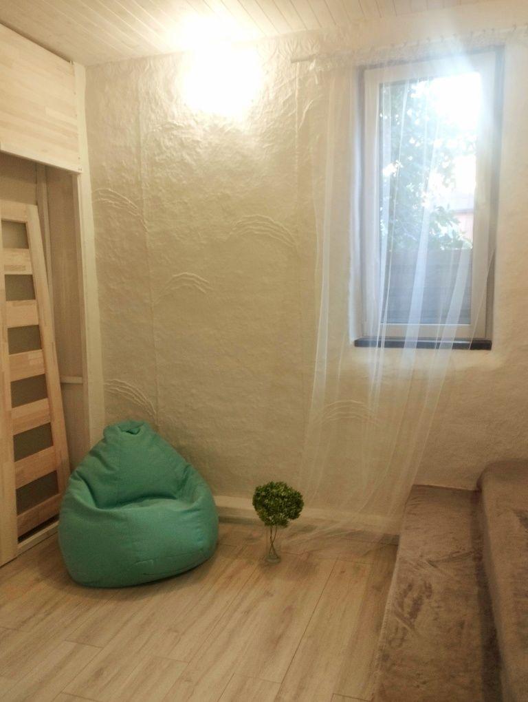 Пропонуємо авторський дизайн будинку 49.40 м² у місті Ірпінь. Побудований із використанням природніх матеріалів: дерева, соломи, глини за каркасною технологією, що забезпечує прохолоду влітку і тепло взимку.Опалення: електричне (тепла підлога), і пічне (плита і піч-лежанка), ел.лічильник(день-ніч), септик із використанням бактерій. Будинок може бути як дві окремі житлові площі( має по два входи, сан.вузли, кухні) так і однією площею. Вода централізована. Має доглянуте подвір'я, тераси з обох боків. підсобні приміщення, погріб, місце для авто. Готовий для безпечного і комфортного проживання.