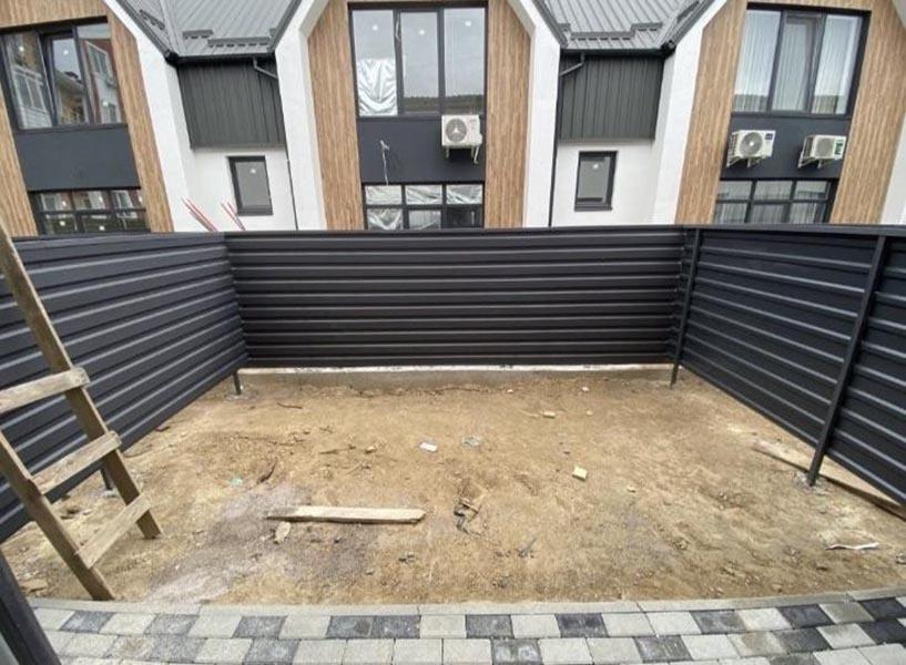Територія: бруківка, огорожа з металопрофілю