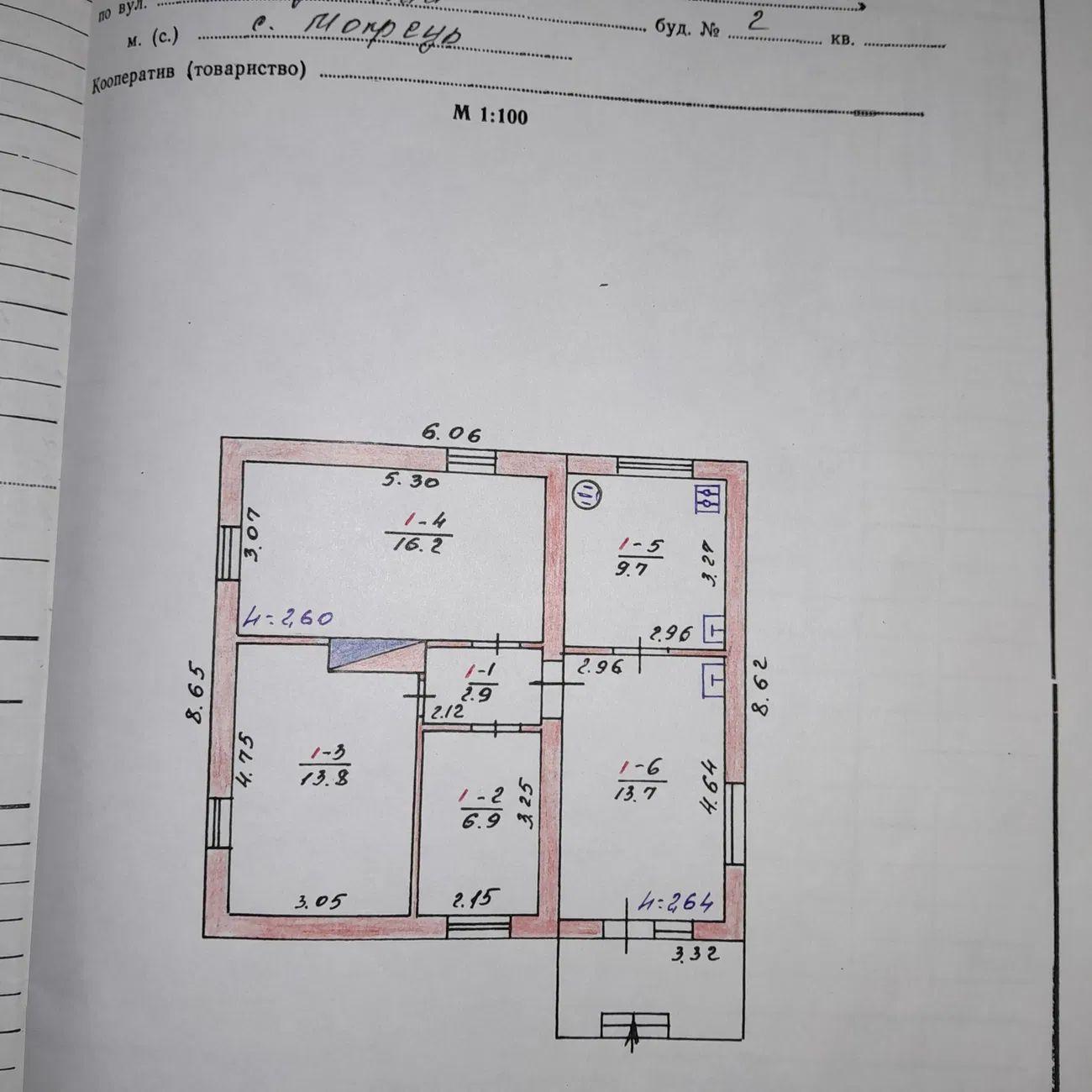 3 кімн. | 63.20/42/9.00 м² | 12 сот.